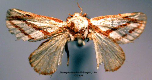 ![]() Heterogenea invitabilis Wallengren, 1860. Reference: Wallengren, H.D.J. 1860, Lepidopterologische Mittheilungen. - Wiener Entomologische Monatschrift Band IV Nr. 2, Karl Ueberreuter, Alservorstadt. pp 33-46. Return to species-list. |
