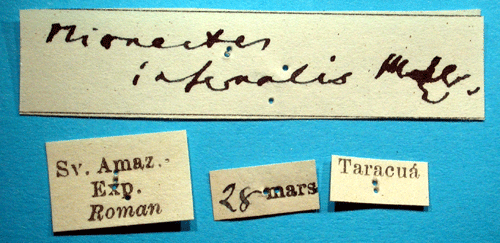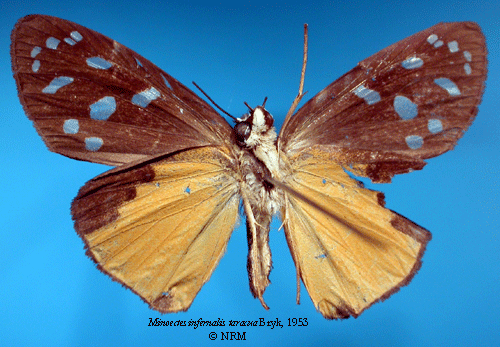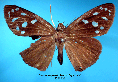 ![]() Mionectes infernalis taracua Bryk, 1953. Reference: Bryk, F. 1953, Lepidoptera aus dem Amazonasgebiete und aus Peru gesammelt von Dr. Douglas Melin und Dr. Abraham Roman. - Arkiv för Zoologi Band 5 nr. 1, Almqvist & Wiksell Boktryckeri, Uppsala. 268 pp. Return to species-list. |