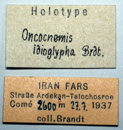 Oncocnemis idioglypha Brandt, 1938. Reference: Brandt, W. 1938, Beitrag zur Lepidopteren-Fauna von Iran. Neue Gattungen, Arten und Formen. - Entomologische Rundschau Jahrgang 55, Stuttgart. p. 518. Return to species-list. |