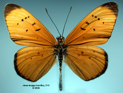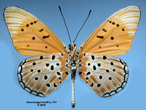 Acraea leucopyga Aurivillius, 1904. Reference: Aurivillius, C. 1904, Diagnosen neuer Lepidopteren aus Afrika 7. - Entomologisk tidskrift vol 25, Nordiska boktryckeriet AB, Stockholm. pp. 92-96. Return to species-list. |