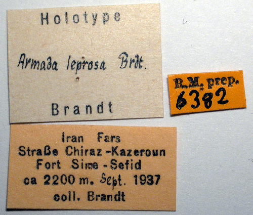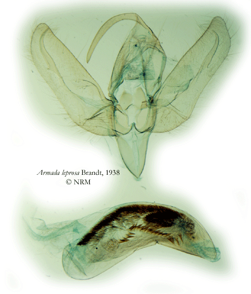 Armada leprosa Brandt, 1938. Reference: Brandt, W. 1938, Beitrag zur Lepidopteren-Fauna von Iran. Neue Gattungen, Arten und Formen. - Entomologische Rundschau Jahrgang 55, Stuttgart. p. 560. Return to species-list. |