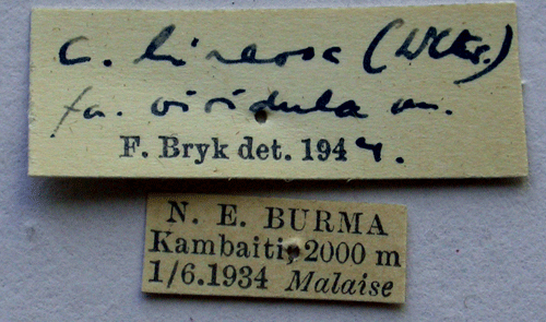 Reference: Bryk, F. 1944, Entomological Resuls from the Swedish Expedition 1934 to Burma and British India. Lepidoptera: Saturniidae, Bombycidae, Eupterotidae, Uranidae, Epiplemidaeund Sphingidae. Mit 6 Tafeln und 1 Karte. - Arkiv för Zoologi Band 35 A nr. 8, Almqvist & Wiksell Boktryckeri, Uppsala. 1 - 55 pp.
