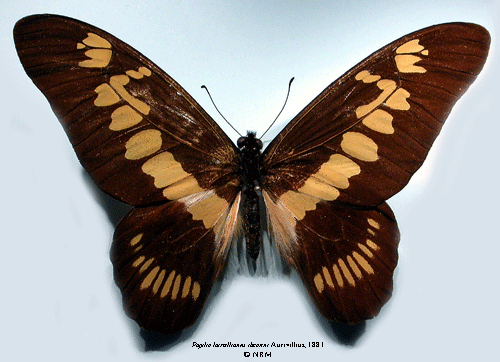 Papilio latreillianus theorini Aurivillius, 1881. Reference: Aurivillius, C. 1881, Om en samling fjärilar från Gaboon. - Entomologisk tidskrift vol 2, Centraltryckeriet, Stockholm. pp. 38-47. Return to species-list. |