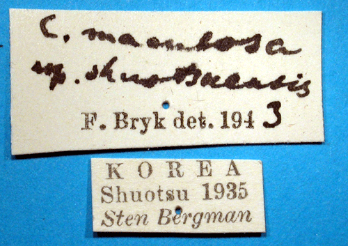 ![]() Cucullia maculosa shuotsuensis Bryk, 1948. Reference: Bryk, F. 1948, Zur Kenntnis der Großschmetterlinge von Korea. Pars II. Macrofrenatae II (finis): Notodontidae, Lymantriidae, Saturniidae, Brahmaeidae, Drepanidae, Epiplemidae, Lasiocampidae, Arctiidae, Thyatiridae, Noctuidae, Geometridae. Heteroneura: Fam.: Cochlifiidae, Zygaenidae. Tineoidea: Fam.: Cossidae, Psychidae. Mit 7 Tafeln. - Arkiv för Zoologi Band 41 A nr. 1, Almqvist & Wiksell Boktryckeri, Uppsala. 1 - 225 pp. Return to species-list. |