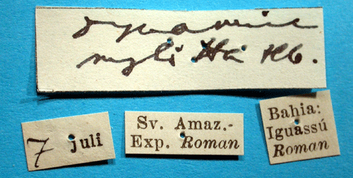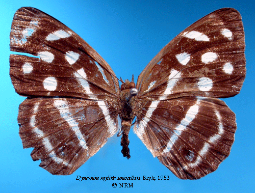 ![]() Dynamine mylitta uniocellata Bryk, 1953. Reference: Bryk, F. 1953, Lepidoptera aus dem Amazonasgebiete und aus Peru gesammelt von Dr. Douglas Melin und Dr. Abraham Roman. - Arkiv för Zoologi Band 5 nr. 1, Almqvist & Wiksell Boktryckeri, Uppsala. 268 pp. Return to species-list. |