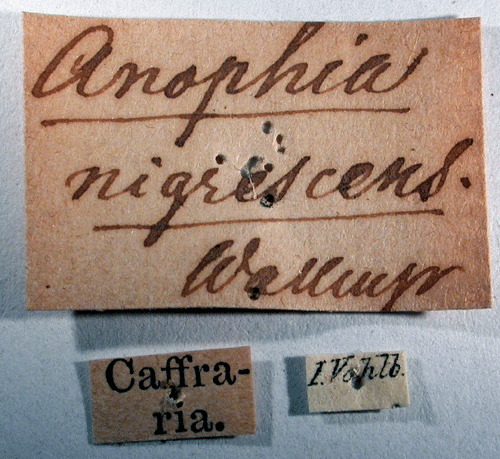 ![]() Anophia nigrescens Wallengren, 1856. Reference: Wallengren, H.D.J. 1856, Anteckningar i Zoologien. I. Kafferlandets Macrolepidopter-Fauna. - Akademisk Afhandling, Berlingska Boktryckeriet, Lund. 97 pp. Return to species-list. |