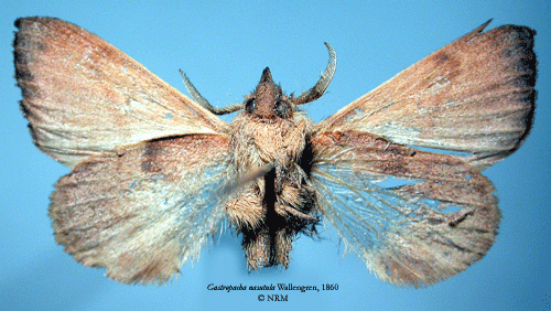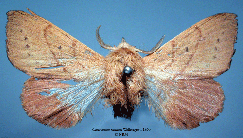 ![]() Gastropacha nasutula Wallengren, 1860. Reference: Wallengren, H.D.J. 1860, Lepidopterologische Mittheilungen. - Wiener Entomologische Monatschrift Band IV Nr. 6, Karl Ueberreuter, Alservorstadt. pp 161-176. Return to species-list. |