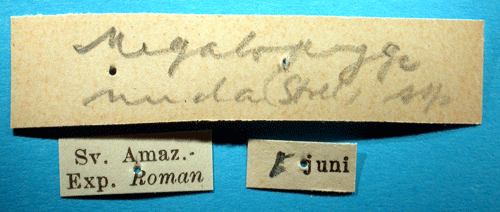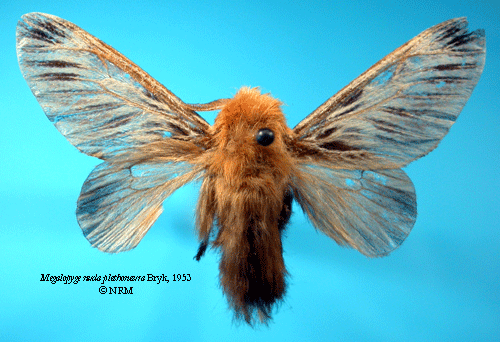 ![]() Megalopyge nuda plethoneura Bryk, 1953. Reference: Bryk, F. 1953, Lepidoptera aus dem Amazonasgebiete und aus Peru gesammelt von Dr. Douglas Melin und Dr. Abraham Roman. - Arkiv för Zoologi Band 5 nr. 1, Almqvist & Wiksell Boktryckeri, Uppsala. 268 pp. Return to species-list. |