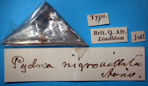 Reference: Aurivillius, C. 1921, Sammlungen der schwedischen Elgon-Expedition im Jahre 1920. 1. Lepidopteren. - Arkiv för Zoologi Band 14 nr. 5, Almqvist & Wiksells Boktryckeri AB, Uppsala. pp. 1-27 Mit 4 Textfiguren.