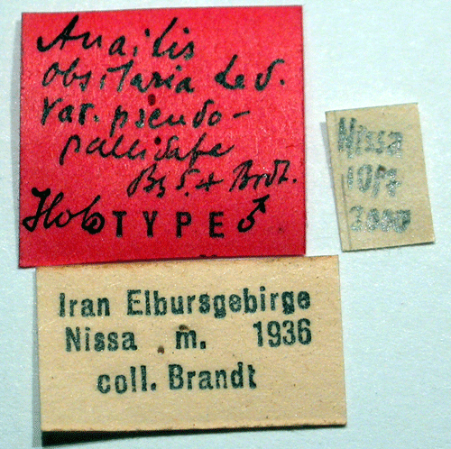 Reference: Bytinski-Salz H. & Brandt, W. 1937, New Lepidoptera from Iran. - Entomologist Record 49, London. pp. 1-15.