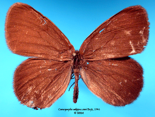 ![]() Coenonympha oedippus steni Bryk, 1946. Reference: Bryk, F. 1946, Zur Kenntnis der Großschmetterlinge von Korea. Pars I. Rhopalocera, Hesperiodea et Macrofrenatae I Sphingidae. Mit 5 Tafeln und 1 Karte. - Arkiv för Zoologi Band 38 A nr. 3, Almqvist & Wiksell Boktryckeri, Uppsala. 1 - 74 pp. Return to species-list. |