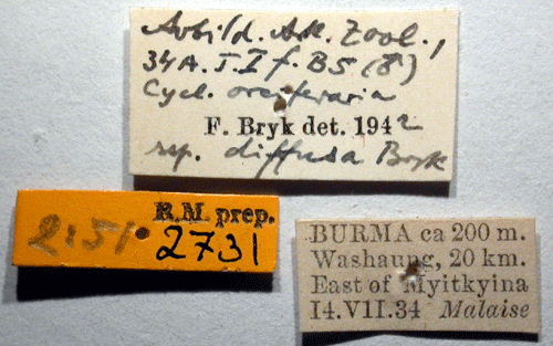![]() Cyclidia orciferaria diffusa Bryk, 1943. Reference: Bryk, F. 1943, Entomological Results from the Swedish Expedition 1934 to Burma and British India. Lepidoptera: Drepanidae. - Arkiv för Zoologi Band 34 A nr. 13, Almqvist & Wiksell Boktryckeri, Stockholm. pp. 1 - 30, Mit 1 Karte und 3 Tafeln. Return to species-list. |