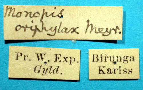 Reference: Meyrick, Edw. 1924, Zoological Results of the Swedish Expedition to Central Africa 1921. Insecta 4. Microlepidoptera. - Arkiv för Zoologi Band 16 nr. 14, Almqvist & Wiksells Boktryckeri AB, Uppsala. pp. 1-4.