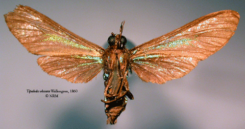 ![]() Tipulodes obscura Wallengren, 1860. Reference: Wallengren, H.D.J. 1860, Lepidopterologische Mittheilungen. - Wiener Entomologische Monatschrift Band IV Nr. 2, Karl Ueberreuter, Alservorstadt. pp 33-46. Return to species-list. |