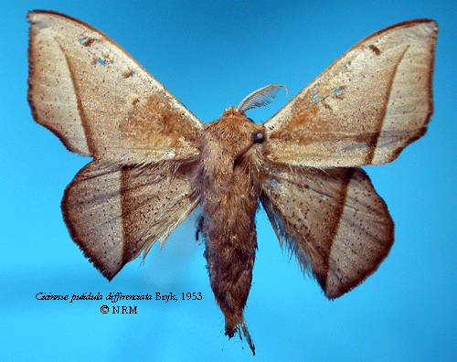 ![]() Cicinnus putidula differentiata Bryk, 1953. Reference: Bryk, F. 1953, Lepidoptera aus dem Amazonasgebiete und aus Peru gesammelt von Dr. Douglas Melin und Dr. Abraham Roman. - Arkiv för Zoologi Band 5 nr. 1, Almqvist & Wiksell Boktryckeri, Uppsala. 268 pp. Return to species-list. |