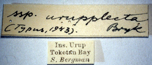 ![]() Diarsia plecta urupplecta Bryk, 1942. Reference: Bryk, F. 1942, Zur Kenntnis der Grosschmetterlinge der Kurilen (Neue Schmetterlinge aus dem Reichsmuseum in Stockholm VI.). - Deutsche Entomologische Zeitschrift "Iris" Band 56, Dresden. 1 - 90 pp. Mit 2 Tafeln und 4 Textabbildungen. Return to species-list. |