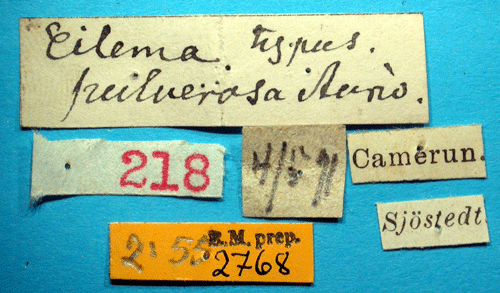 Eilema pulverosa Aurivillius, 1904. Reference: Aurivillius, C. 1904, Beiträge zur Kenntnis der Insektenfauna von Kamerun, N:o 11, Lepidoptera Heterocera. - Arkiv för Zoologi Band 2 nr. 4, Kungl. Boktryckeriet P.A. Norstedt & Söner, Stockholm. pp. 1-68 Mit 51 Textfiguren, 1 Tafel. Return to species-list. |