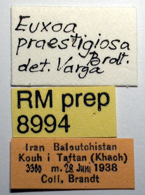 Reference: Brandt, W. 1941, Beitrag zur Lepidopteren-Fauna von Iran (3). Neue Agrotiden, nebst Faunenverzeichnissen. - Mitteilungen der Münchner Entomologischen Gesellschaft 31, München. pp. 835-863.