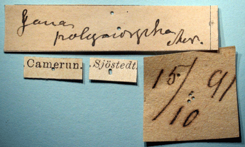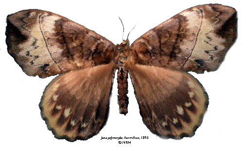 Jana polymorpha Aurivillius, 1893. Reference: Aurivillius, C. 1893, Diagnosen neuer Lepidopteren aus Afrika. - Entomologisk tidskrift vol 14, Iduns Kongl. Hofboktryckeri, Stockholm. pp. 199-214. Return to species-list. |