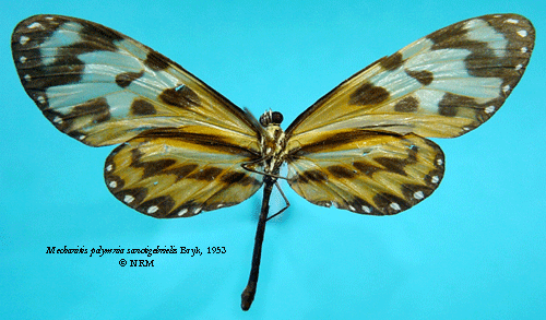 ![]() Mechanitis polymnia sanctigabrielis Bryk, 1953. Reference: Bryk, F. 1953, Lepidoptera aus dem Amazonasgebiete und aus Peru gesammelt von Dr. Douglas Melin und Dr. Abraham Roman. - Arkiv för Zoologi Band 5 nr. 1, Almqvist & Wiksell Boktryckeri, Uppsala. 268 pp. Return to species-list. |