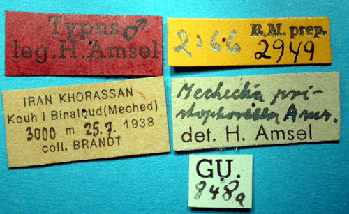 Mechedia pristophorella Amsel, 1951. Reference: Amsel, H.G. 1951, Die Microlepidopteren der Brandt'schen Iran-Ausbeute 3. Teil. - Arkiv för Zoologi Band 1 nr. 36, Almqvist & Wiksells Boktryckeri AB, Uppsala. pp. 525-563 Mit 87 Figuren im Text. Return to species-list. |