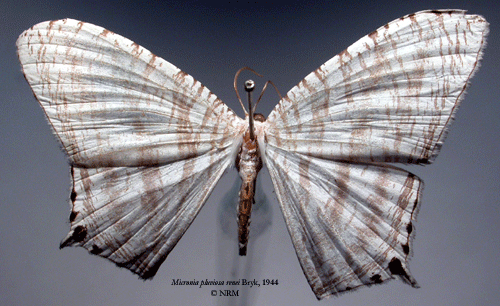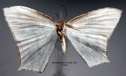 ![]() Micronia pluviosa renei Bryk, 1944. Reference: Bryk, F. 1944, Entomological Resuls from the Swedish Expedition 1934 to Burma and British India. Lepidoptera: Saturniidae, Bombycidae, Eupterotidae, Uranidae, Epiplemidaeund Sphingidae. Mit 6 Tafeln und 1 Karte. - Arkiv för Zoologi Band 35 A nr. 8, Almqvist & Wiksell Boktryckeri, Uppsala. 1 - 55 pp. Return to species-list. |