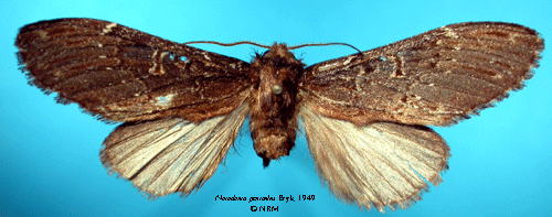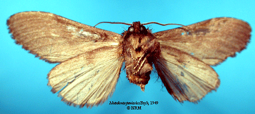 ![]() Notodonta peniculus Bryk, 1949. Reference: Bryk, F. 1949, Entomological Results from the Swedish Expedition 1934 to Burma and British India. Lepidoptera: Notodontidae Stephens, Cossidae Newman and Hepialidae Stephens. Gesammelt von René Malaise. Mit 4 Tafeln und 1 Karte in Text. - Arkiv för Zoologi Band 42 A nr. 19, Almqvist & Wiksell Boktryckeri, Uppsala. 1 - 51 pp. Return to species-list. |