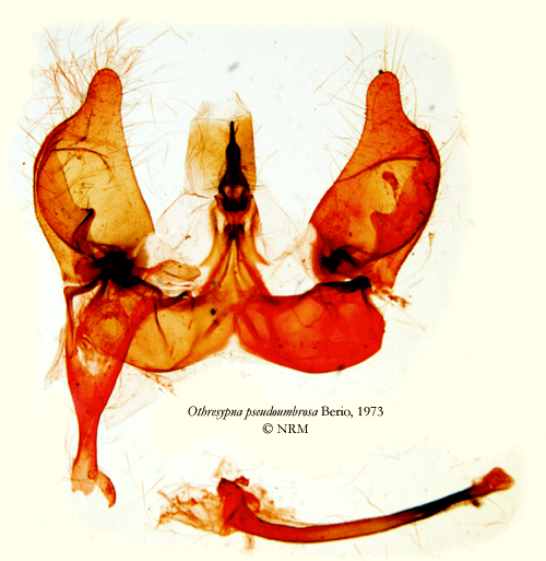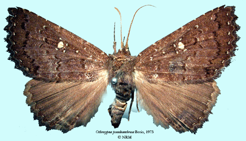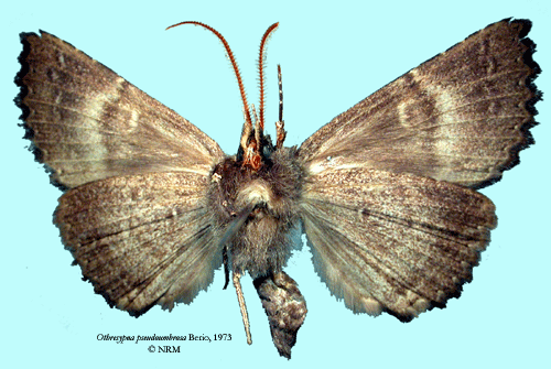 Othresypna pseudoumbrosa Berio, 1973. Reference: Berio, E. 1973, Nuove specie e generi di Noctuidae Africane e Asiatiche e note sinonimiche, Parte II. - Annali del Museo Civico di Storia Naturale "Giacomo Doria" Vol. 79, Genova. pp. 126-171. Return to species-list. |