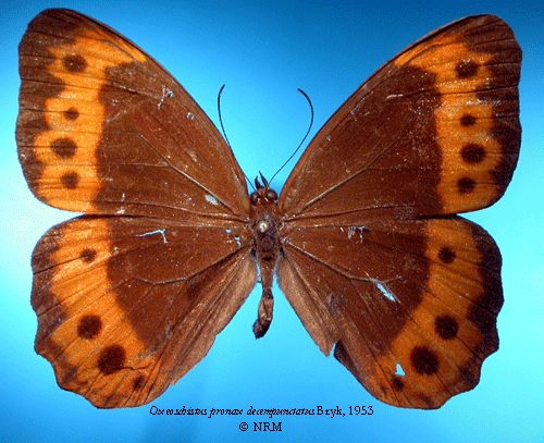 ![]() Oxeoschistus pronax decempunctatus Bryk, 1953. Reference: Bryk, F. 1953, Lepidoptera aus dem Amazonasgebiete und aus Peru gesammelt von Dr. Douglas Melin und Dr. Abraham Roman. - Arkiv för Zoologi Band 5 nr. 1, Almqvist & Wiksell Boktryckeri, Uppsala. 268 pp. Return to species-list. |