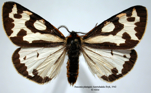![]() Parasemia plantaginis kamtschadalus Bryk, 1942. Reference: Bryk, F. 1942, Zur Kenntnis der Grosschmetterlinge der Kurilen (Neue Schmetterlinge aus dem Reichsmuseum in Stockholm VI.). - Deutsche Entomologische Zeitschrift "Iris" Band 56, Dresden. 1 - 90 pp. Mit 2 Tafeln und 4 Textabbildungen. Return to species-list. |