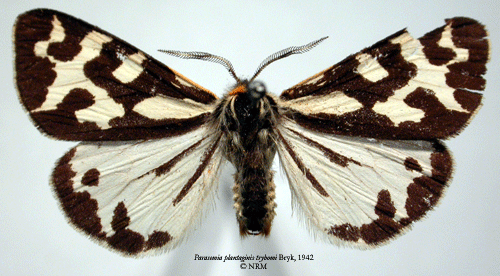 ![]() Parasemia plantaginis trybomi Bryk, 1942. Reference: Bryk, F. 1942, Zur Kenntnis der Grosschmetterlinge der Kurilen (Neue Schmetterlinge aus dem Reichsmuseum in Stockholm VI.). - Deutsche Entomologische Zeitschrift "Iris" Band 56, Dresden. 1 - 90 pp. Mit 2 Tafeln und 4 Textabbildungen. Return to species-list. |