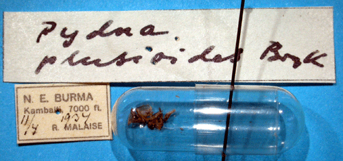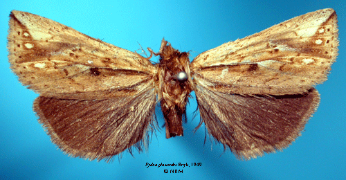 ![]() Pydna plusioides Bryk, 1949. Reference: Bryk, F. 1949, Entomological Results from the Swedish Expedition 1934 to Burma and British India. Lepidoptera: Notodontidae Stephens, Cossidae Newman and Hepialidae Stephens. Gesammelt von René Malaise. Mit 4 Tafeln und 1 Karte in Text. - Arkiv för Zoologi Band 42 A nr. 19, Almqvist & Wiksell Boktryckeri, Uppsala. 1 - 51 pp. Return to species-list. |