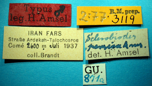 Sclerobiodes persica Amsel, 1951. Reference: Amsel, H.G. 1951, Die Microlepidopteren der Brandt'schen Iran-Ausbeute 3. Teil. - Arkiv för Zoologi Band 1 nr. 36, Almqvist & Wiksells Boktryckeri AB, Uppsala. pp. 525-563 Mit 87 Figuren im Text. Return to species-list. |