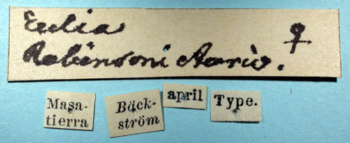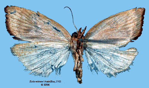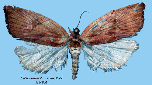 ![]() Eulia robinsoni Aurivillius, 1922. Reference: Aurivillius, Chr., Prout, L.B., Meyrick, E. 1922, Lepidopteren von Juan Fernandez und der Oster-Insel. - The Natural History of Juan Fernandez and Easter Island, Edited by Dr. Carl Skottsberg, vol III. pp. 255-270, Almqvist & Wiksell, Uppsala. Return to species-list. |