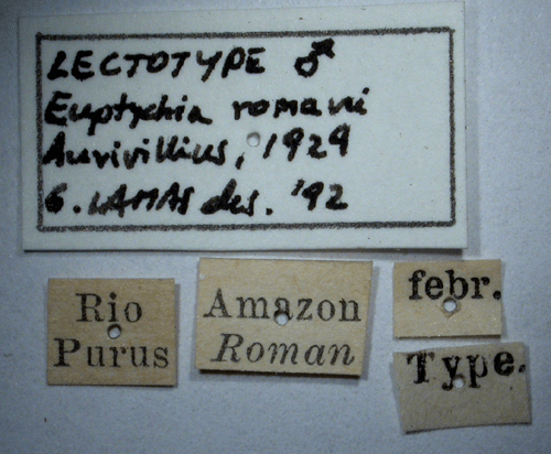 ![]() Euptychia romani Aurivillius, 1929. Reference: Aurivillius, Chr. 1929, Wissenschaftliche Ergebnisse der schwedischen Entomologischen Reisen de Herrn Dr. A. Roman in Amazonas 1914 - 1915 und 1923 - 1924. - Entomologisk tidskrift Årg. 20 pp. 153-168, Almqvist & Wiksells Boktryckeri AB., Uppsala. Return to species-list. |