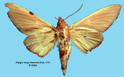 ![]() Hapigia raatzi cinnamonea Bryk, 1953. Reference: Bryk, F. 1953, Lepidoptera aus dem Amazonasgebiete und aus Peru gesammelt von Dr. Douglas Melin und Dr. Abraham Roman. - Arkiv för Zoologi Band 5 nr. 1, Almqvist & Wiksell Boktryckeri, Uppsala. 268 pp. Return to species-list. |