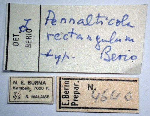 Pennalticola rectangulum Berio, 1973. Reference: Berio, E. 1973, Nuove specie e generi di Noctuidae Africane e Asiatiche e note sinonimiche, Parte II. - Annali del Museo Civico di Storia Naturale "Giacomo Doria" Vol. 79, Genova. pp. 126-171. Return to species-list. |