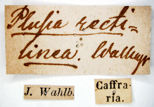 ![]() Plusia rectilinea Wallengren, 1856. Reference: Wallengren, H.D.J. 1856, Anteckningar i Zoologien. I. Kafferlandets Macrolepidopter-Fauna. - Akademisk Afhandling, Berlingska Boktryckeriet, Lund. 62 pp. Return to species-list. |