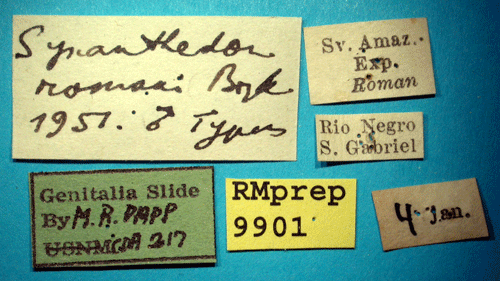 ![]() Synanthedon romani Bryk, 1953. Reference: Bryk, F. 1953, Lepidoptera aus dem Amazonasgebiete und aus Peru gesammelt von Dr. Douglas Melin und Dr. Abraham Roman. - Arkiv för Zoologi Band 5 nr. 1, Almqvist & Wiksell Boktryckeri, Uppsala. 268 pp. Return to species-list. |