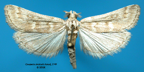 Constantia stricticalis Amsel, 1949. Reference: Amsel, H.G. 1949, Die Microlepidopteren der Brandt'schen Iran-Ausbeute 1. Teil. - Bulletin de la societe Fouad Ier D'Entomologie volume XXXIII, Kairo, pp. 227-269 Mit 4 Tafeln. Return to species-list. |