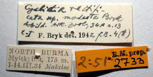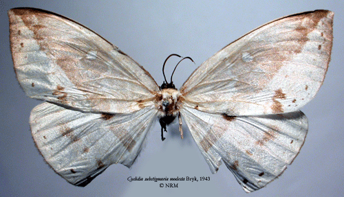 ![]() Cyclidia substigmaria modesta Bryk, 1943. Reference: Bryk, F. 1943, Entomological Results from the Swedish Expedition 1934 to Burma and British India. Lepidoptera: Drepanidae. - Arkiv för Zoologi Band 34 A nr. 13, Almqvist & Wiksell Boktryckeri, Stockholm. pp. 1 - 30, Mit 1 Karte und 3 Tafeln. Return to species-list. |