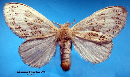 Euproctis sjoestedti Aurivillius, 1904. Reference: Aurivillius, C. 1904, Beiträge zur Kenntnis der Insektenfauna von Kamerun, N:o 11, Lepidoptera Heterocera. - Arkiv för Zoologi Band 2 nr. 4, Kungl. Boktryckeriet P.A. Norstedt & Söner, Stockholm. pp. 1-68 Mit 51 Textfiguren, 1 Tafel. Return to species-list. |