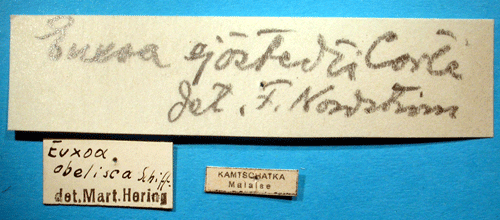 Euxoa sjoestedti Corti, 1929. Reference: Corti, A. 1929, Entomologische Ergebnisse der Swedishen Kamtchatka-Expedition 1920-1922. 25. Lepidoptera IV. Notodontidae und Noctuidae. - Arkiv för Zoologi Band 21 B nr. 1, Almqvist & Wiksells Boktryckeri AB, Uppsala. pp. 1-4. Return to species-list. |