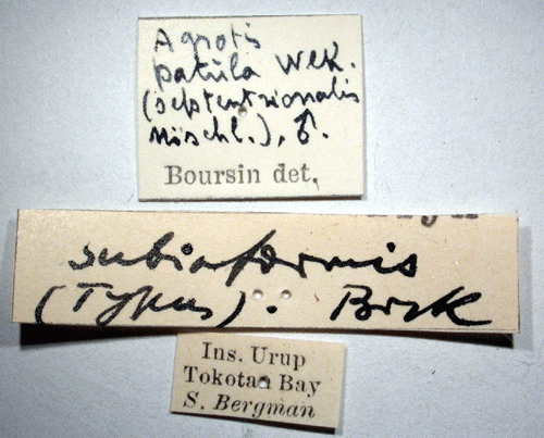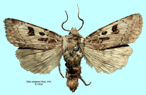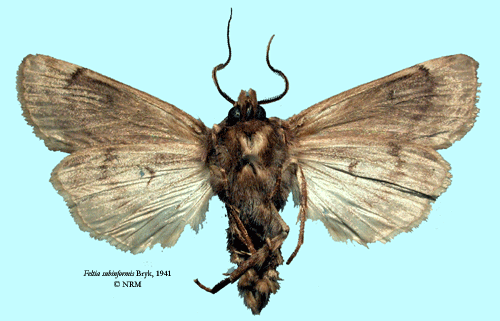 ![]() Feltia subinformis Bryk, 1941. Reference: Bryk, F. 1941, Neue Schmetterlinge aus dem Reichsmuseum in Stockholm. - Entomologisk tidskrift vol 62 H. 3-4, Almqvist & Wiksell Boktryckeri, Uppsala. 141 - 157 pp. Mit 6 Abb. Return to species-list. |