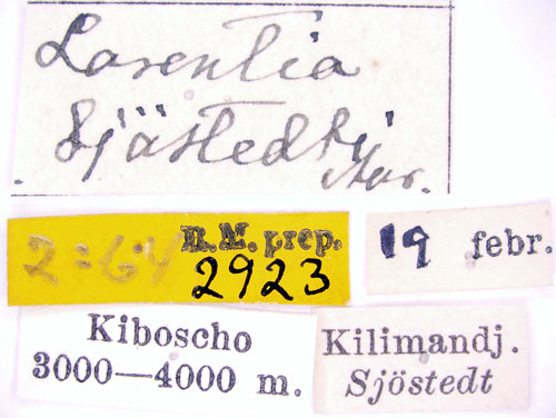 ![]() Larentia sjostedti Aurivillius, 1910. Reference: Aurivillius, Chr. 1910, in Sjöstedt, Y. Wissenschaftliche Ergebnisse der Swedischen Zoologischen Expedition nach dem Kilimandjaro, dem Meru und den Umgebenden Masaisteppen Deutsch-Ostafrikas 1905-1906 2 Band. - 9. Lepidoptera pp. 1-56, P. Palmquist AB., Stockholm. Return to species-list. |