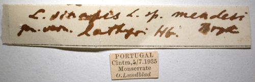 ![]() Leptidea sinapis mendesi Bryk, 1940. Reference: Bryk, F. 1940, Die von Prof. Dr. Lundblad Gesammelten Grosssmetterlinge der Iberischen Halbinsel. - Arkiv för Zoologi Band 32 A nr. 22, Almqvist & Wiksell Boktryckeri, Uppsala. 1 - 36 pp. Mit 7 Tafeln. Return to species-list. |