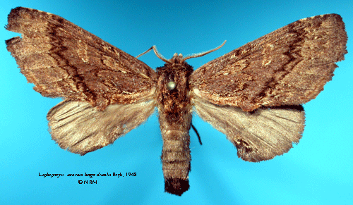 ![]() Lophopteryx saturata hoegei discalis Bryk, 1948. Reference: Bryk, F. 1948, Zur Kenntnis der Großschmetterlinge von Korea. Pars II. Macrofrenatae II (finis): Notodontidae, Lymantriidae, Saturniidae, Brahmaeidae, Drepanidae, Epiplemidae, Lasiocampidae, Arctiidae, Thyatiridae, Noctuidae, Geometridae. Heteroneura: Fam.: Cochlifiidae, Zygaenidae. Tineoidea: Fam.: Cossidae, Psychidae. Mit 7 Tafeln. - Arkiv för Zoologi Band 41 A nr. 1, Almqvist & Wiksell Boktryckeri, Uppsala. 1 - 225 pp. Return to species-list. |