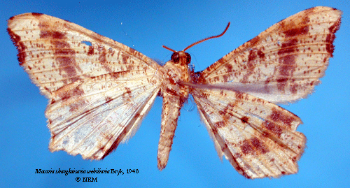 ![]() Macaria shanghaisaria wehrliaria Bryk, 1948. Reference: Bryk, F. 1948, Zur Kenntnis der Großschmetterlinge von Korea. Pars II. Macrofrenatae II (finis): Notodontidae, Lymantriidae, Saturniidae, Brahmaeidae, Drepanidae, Epiplemidae, Lasiocampidae, Arctiidae, Thyatiridae, Noctuidae, Geometridae. Heteroneura: Fam.: Cochlifiidae, Zygaenidae. Tineoidea: Fam.: Cossidae, Psychidae. Mit 7 Tafeln. - Arkiv för Zoologi Band 41 A nr. 1, Almqvist & Wiksell Boktryckeri, Uppsala. 1 - 225 pp. Return to species-list. |