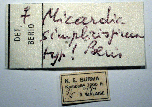 Micardia simplicissima Berio, 1973. Reference: Berio, E. 1973, Nuove specie e generi di Noctuidae Africane e Asiatiche e note sinonimiche, Parte II. - Annali del Museo Civico di Storia Naturale "Giacomo Doria" Vol. 79, Genova. pp. 126-171. Return to species-list. |