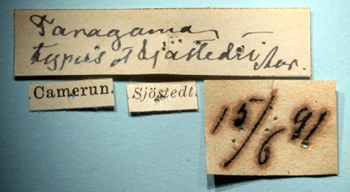 Reference: Aurivillius, C. 1902, Beiträge zur Kenntniss der Insektenfauna von Kamerun no: 11. - Entomologisk tidskrift vol 23, Iduns Kongl. Hofboktryckeri, Stockholm. pp. 273-288.